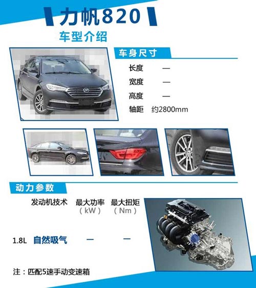 其中,力帆820的推出將填補力帆在中型車市場中的空白。對于該款新車,力帆集團副總裁兼汽車銷售公司總經理廖雄輝先生曾向網通社透露:“后續幾年力帆產品將全面覆蓋A00至B級,其中B級轎車(820)軸距接近兩米八。”從該車的申報圖來看,外觀設計與奧迪A4L車型有許多相似之處。而在動力方面,力帆820搭載1.8L自然吸氣發動機,最大功率有望達到98kW。