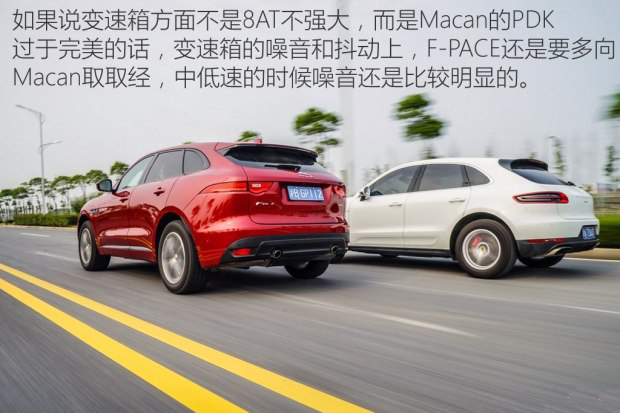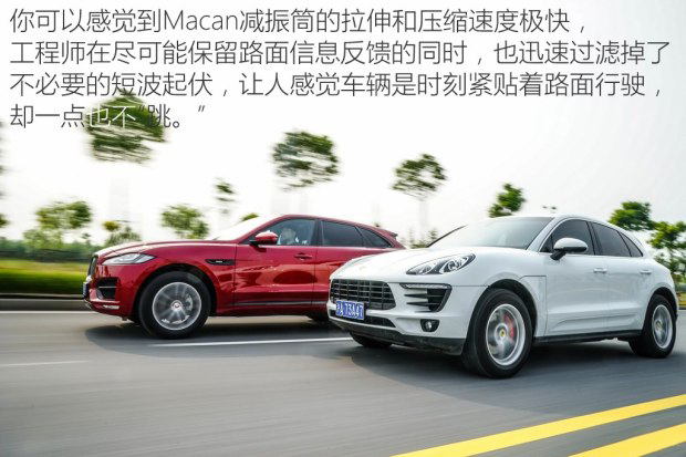 當(dāng)然了,車肯定不只是用來看的,尤其是當(dāng)兩個講究運動的品牌碰擦出火花的時候,后來者就真的只是后來者了。事實證明,Macan把差價都用在了那些看不到的地方,比如全系標(biāo)配的軟硬可調(diào)減振器,又比如全系標(biāo)配的四驅(qū)系統(tǒng),當(dāng)然還有堪稱毫無瑕疵的變速箱和發(fā)動機匹配度。這一切都讓Macan開起來在它這個價位、這個排量上幾乎挑不出瑕疵,并且在性能和舒適兩方面都做到了極致的均衡。相比之下,F(xiàn)-PACE就顯得過于的專一了,英國工程師們似乎一貫的熱衷于向世人展示他們對于機械感和純粹駕駛樂趣的追求,所以F-PACE相比Macan而言,動力輸出要活躍很多,發(fā)動機的噪音也更大一些,懸架系統(tǒng)則保留了更多的路面信息,使其開起來樂趣十足的同時,舒適度上卻著實缺了一些,當(dāng)然了,油耗在已經(jīng)很出色的前提下,相比對手還是高了那么一點點。