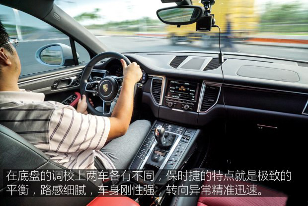 在底盤調(diào)校的功夫上,這兩個廠家以往給人的印象也是各有特點。保時捷的特色是在運動和舒適方面往往能做到極致的平衡,這一點在911系列上尤其明顯,既可以穿上休閑裝化身通勤家用車,也可以套上運動裝秒變神經(jīng)質(zhì)賽道狂。Macan自然也繼承了這一點,作為入門車型,2.0T的Macan對舒適性的考量還要更高一些,路感細膩,懸架整,整個車架的剛性非常高,但卻沒有影響到乘坐的舒適度。