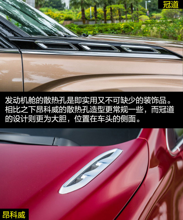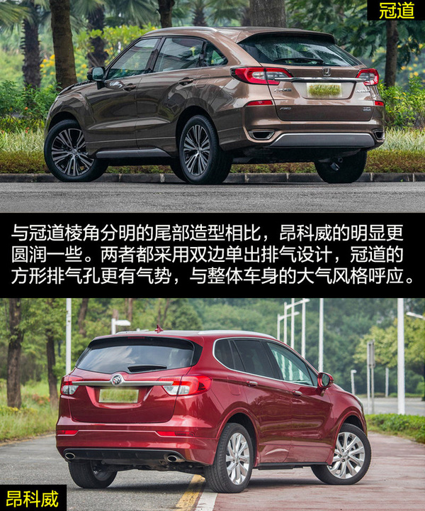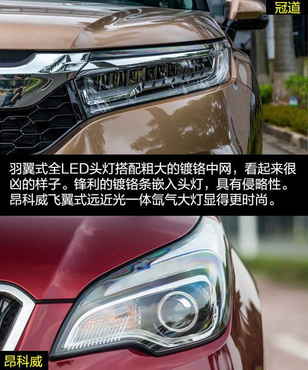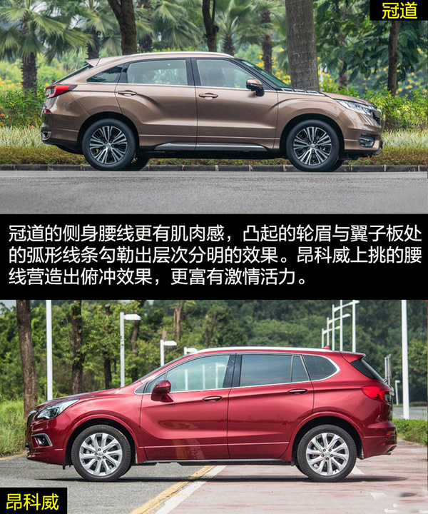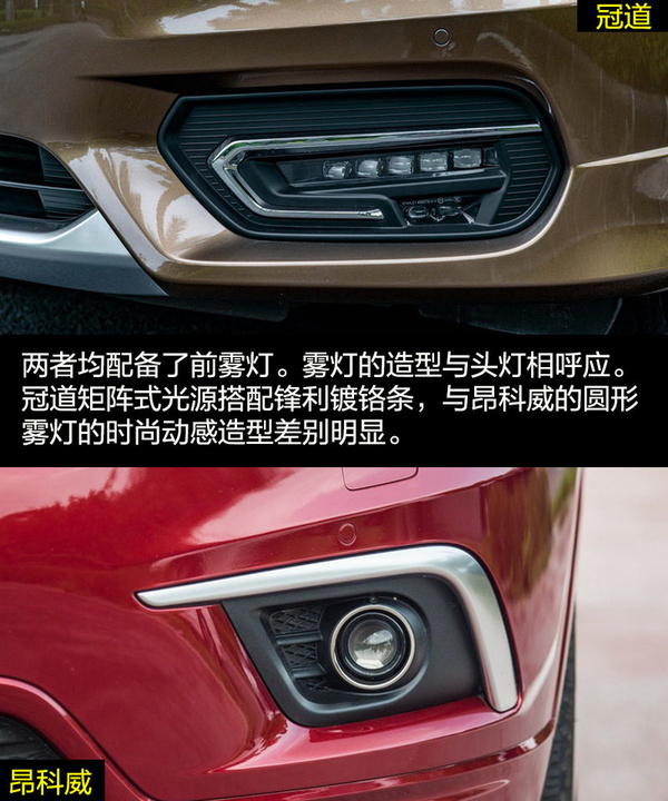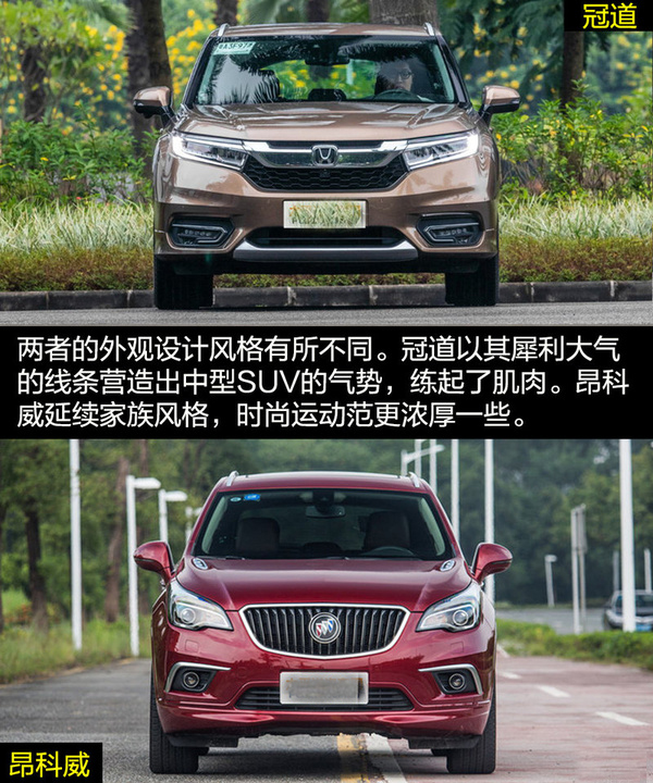 雖然兩者的定位都是中型SUV,但是在外觀設(shè)計(jì)上兩者的差距比較大,這也和各自的風(fēng)格不同有關(guān)。冠道的車身更龐大,硬朗的線條與富有侵略性的頭燈讓冠道非常有氣勢(shì),更多的展現(xiàn)出中型SUV的氣勢(shì)。昂科威因?yàn)閷⒏嗟哪繕?biāo)放在了緊湊型SUV身上,較小的車身與時(shí)尚運(yùn)動(dòng)的外觀風(fēng)格更合適。