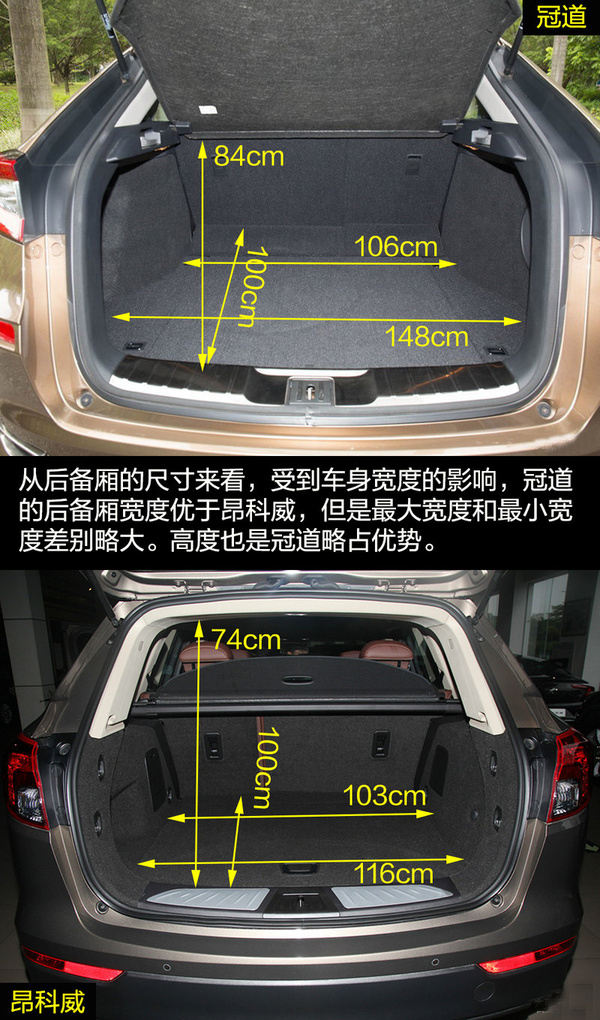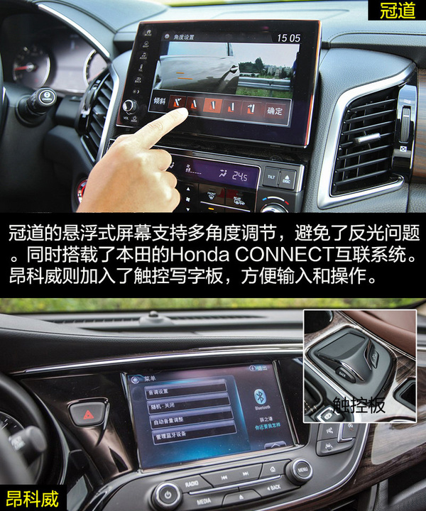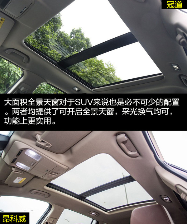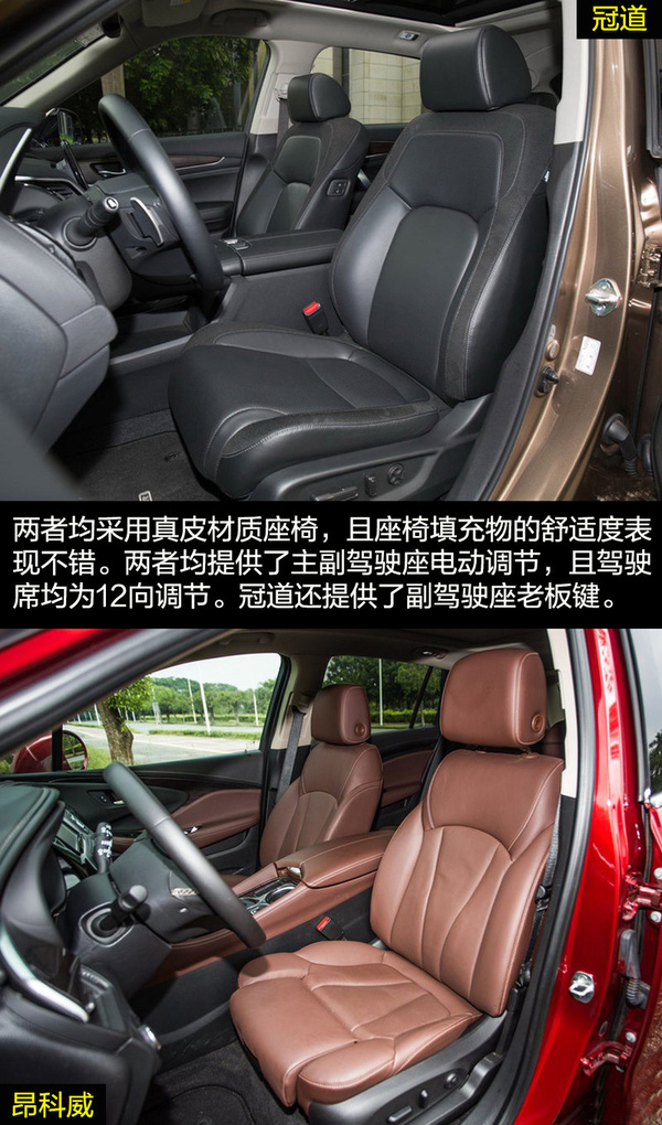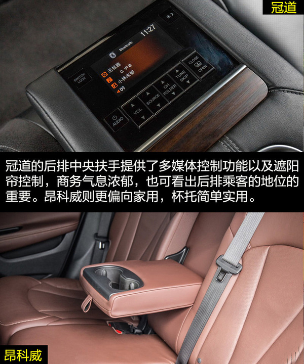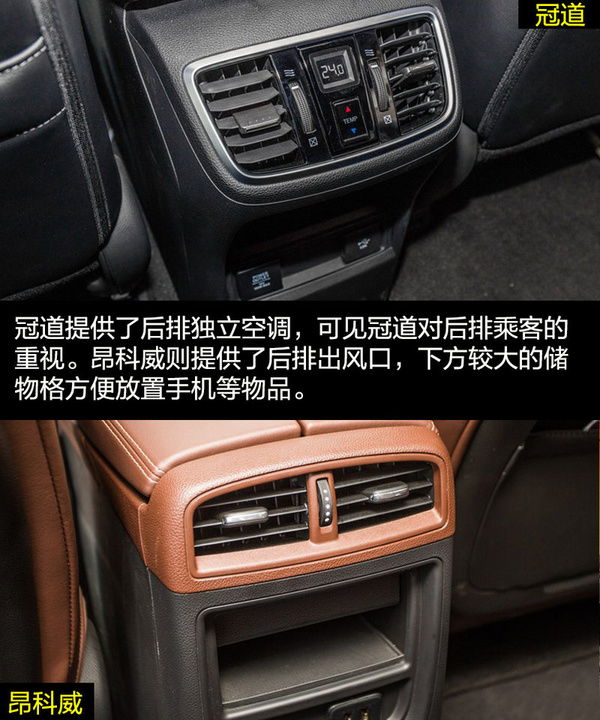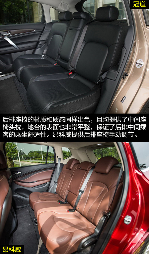由于冠道更側(cè)重商務(wù)用途,因此在車身尺寸上冠道更有優(yōu)勢(shì),由此帶來的乘坐空間的差別也是明顯的。冠道的后排空間非常有優(yōu)勢(shì),同時(shí)從前排副駕駛的老板鍵、后排獨(dú)立空調(diào)、后排座椅加熱和后排中央扶手多媒體控制區(qū)等配置也可看出冠道對(duì)后排乘客的重視。昂科威的乘坐空間表現(xiàn)滿足家用綽綽有余,后排腿部?jī)扇杏嗟木嚯x在中型SUV中的表現(xiàn)也是可圈可點(diǎn)的,同時(shí)后排座椅還支持靠背角度調(diào)節(jié)和座椅移動(dòng)。