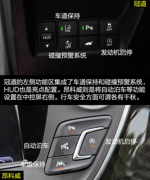 內(nèi)飾配置方面,冠道略占優(yōu)勢(shì)。安全配置兩者的表現(xiàn)都值得肯定,除了ESP和胎壓監(jiān)測(cè)系統(tǒng)外,前/后排頭部氣簾、無鑰匙進(jìn)入和一鍵啟動(dòng)也都出現(xiàn)在兩者身上。昂科威還提供了陡坡緩降功能。冠道的自動(dòng)駐車、HUD抬頭顯示和全景攝像頭是亮點(diǎn)。值得一提的是兩者在高科技配置上都下了很大的功夫,自動(dòng)泊車、車道偏離輔助、自適應(yīng)巡航等功能都沒有缺席。
