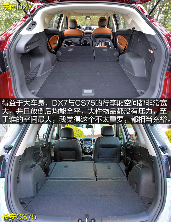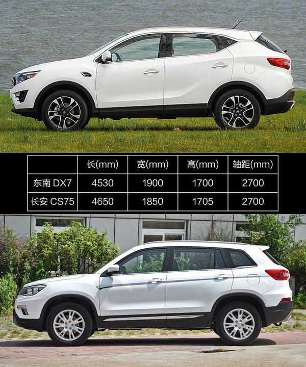體積方面,東南DX7與長安CS75相差無幾,軸距長度均為2700mm,可以提供很好的乘坐空間,后面的空間對比也驗證了這一點。