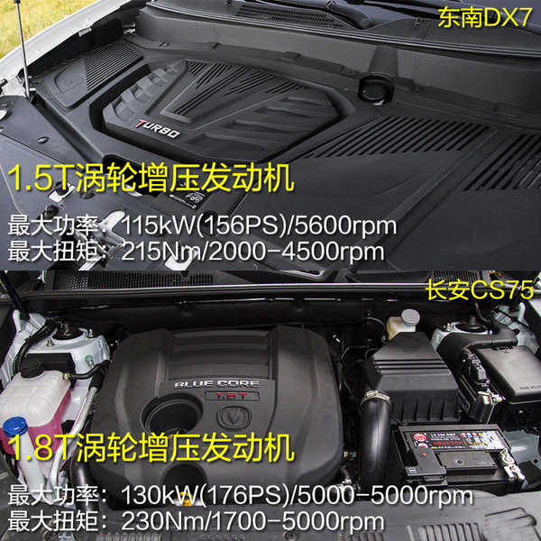 | 東南DX71.5T自動尊貴型與長安CS75自動尊貴版配置差異 | ||
