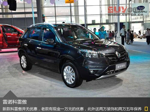 成都車展第一天,雷諾新款科雷傲震撼上市,當然新款科雷傲并沒有降價優惠。然而老款科雷傲卻給出了比較有誠意的銷售價格:不僅在價格方面有一萬元的現金優惠,此外還將額外贈送價值兩萬元的裝飾以及價值兩萬元的五年保養,總共優惠幅度達到5萬元之高。