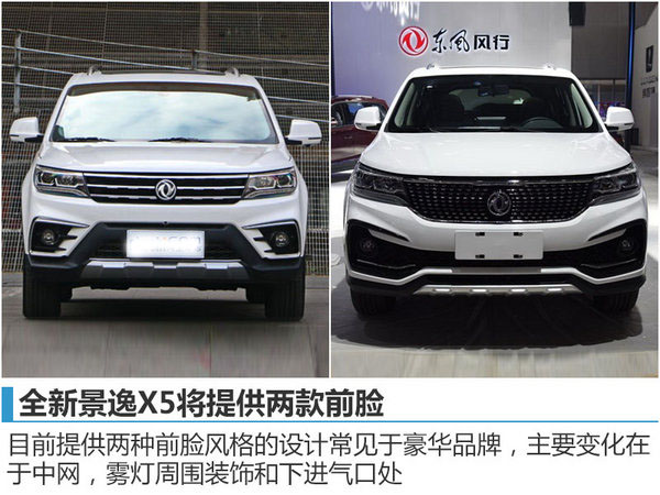 【SUV中國網】景逸X5是東風風行旗下一款緊湊SUV車型,主打10萬元區間的SUV市場,新款車型已經于廣州車展正式公布預售價9-12萬元。我們從東風風行官方獲悉,新車將于本月18日正式上市,外形設計較現款景逸X5有較大改變,新車將裝備兩款前臉,配置將大幅度提升。