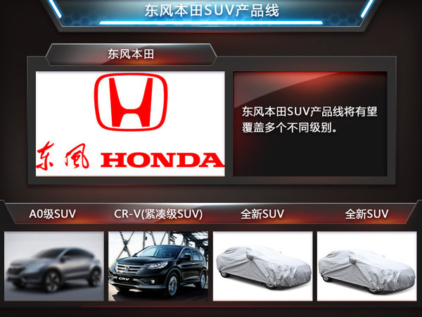 實際上,本田早在去年北美車展發布了一款全新概念車“Urban SUV Concept”,本田技研工業株式會社中國本部長倉石誠司曾表示:本田將以這款Concept V概念車為基礎分別開發兩款全新小型SUV,并于2014年后分別投放廣汽本田和東風本田。如果加上這款小型SUV,東風本田旗下SUV產品線將覆蓋至A0級和A級兩個級別,那么從車型定位來看,或將新增的另外兩款SUV將有望覆蓋到中型以及大型兩個級別。屆時,東風本田SUV產品線得到有效補強,從而為其擴充市場份額提供有力支持。
