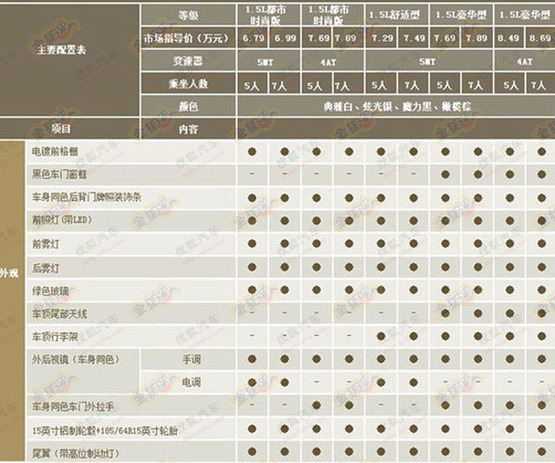配置方面,新車標(biāo)配真皮方向盤、ABS+EBD、駕駛席氣囊、15寸鋁輪轂等。而高配車型還配備行李架、導(dǎo)航、DVD、倒車影像等。