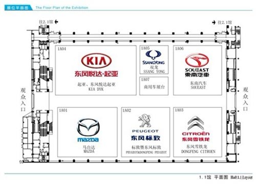 1.1館包括:東風悅達起亞、雙龍、東南、馬自達、東風標致和東風雪鐵龍6個品牌