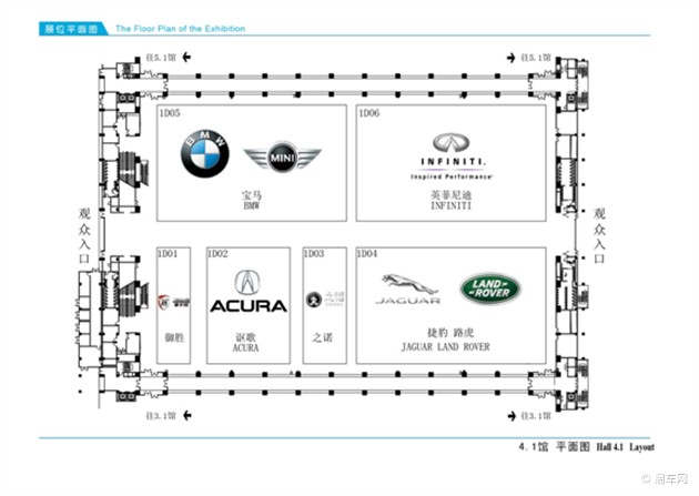 4.1展館主要包括:寶馬、MINI、之諾、英菲尼迪、捷豹路虎、御勝品牌