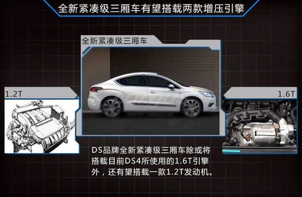 在動力方面,全新緊湊級三廂車有望搭載目前DS4所采用的1.6THP兩款渦輪增壓發(fā)動機,該款引擎最大功率120kw,最大扭矩240N·m。另外該款車型或將應用一款1.2T增壓引擎,最大功率可覆蓋60kw-100kw,最大扭矩則達到了115N·m-230N·m。