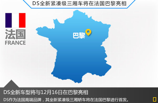 DS作為首個進入中國市場的法國豪華品牌,目前旗下DS3、DS4以及DS5等車型均為兩廂布局,為在更豐富旗下產品覆蓋領域,其將推出首款采用三廂設計的全新戰(zhàn)略車型。對于新車型的亮相時間,網通社從長安標致雪鐵龍官方獲悉:DS品牌全新緊湊級三廂車將于12月19日在法國巴黎正式發(fā)布。并且長安標致雪鐵龍有限公司副總裁蔡建軍先生此前向網通社表示:“為了更加適應中國消費者的需求,我們將在2014年國產一款與DS4同級別的三廂緊湊級轎車”