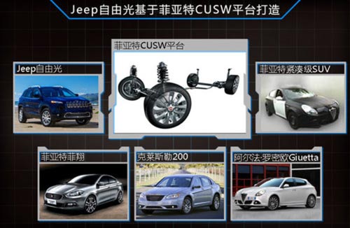 Jeep自由光采用了菲亞特全新CUSW平臺打造,而CUSW平臺具有的可伸縮特性也使自由光的軸距達到了2730mm。未來菲亞特菲翔、克萊斯勒200以及菲亞特緊湊級SUV等車型均將基于該平臺打造。平臺共通化將有利于降低車型制造成本,同時還能提升多款產(chǎn)品之間的零部件共享率。