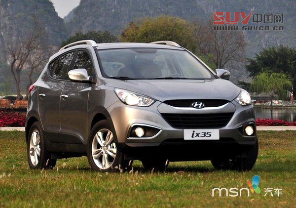 現代ix35整體外觀帶有明顯歐式風格,時尚前衛,具有強烈的視覺沖擊。其前臉部分采用形狀激進的六邊形進氣格柵,而犀利修長的前燈分列在車頭兩側,再搭配上鍍鉻邊框修飾的霧燈,使整體設計風格保持一致,運用復雜繁瑣的線條勾勒了一張兇悍犀利的面孔。