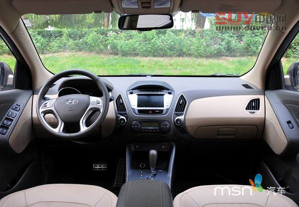 ix35的內飾延續了外觀設計的特點。整個中控臺部分呈“X”造型,與束狀出風口搭配的非常和諧,極富前衛感,并且個性的設計也沒有影響其實用性的表現。不過雖然造型新穎,但內飾用料方面還有待提高。