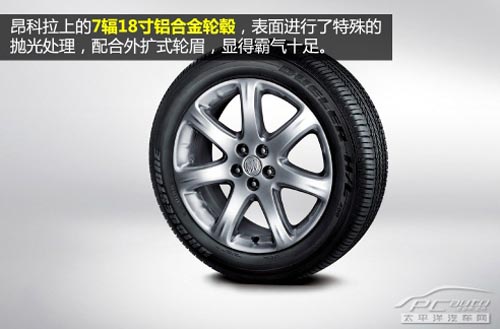 在中國,一般的城市小型SUV都不會配置太大的輪轂,通常配置是15或16寸。而昂科拉則原車配置了7輻18寸鋁合金輪轂,這使得昂科拉即使不經過改裝也相當好看。輪轂的表面經過特殊的拋光處理,加上外擴式的輪眉,相當高端大氣上檔次。