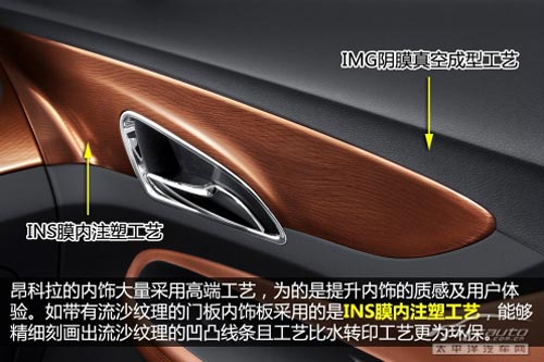 IMG陰膜真空成型工藝一般使用在高檔豪華車上的,而在昂科拉這個價位的其他車型很少會采用。