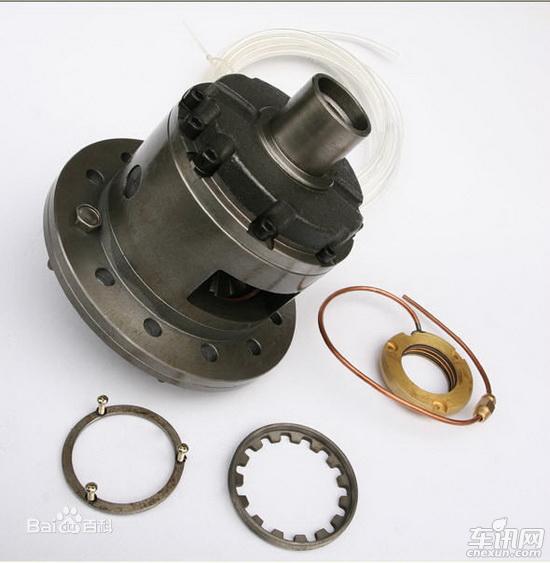 差速鎖:差速鎖的作用是當一個驅動輪打滑時,將差速器殼與半軸鎖緊成一體,使差速器失去差速作用,可以把全部扭矩轉移到另一側驅動輪上。