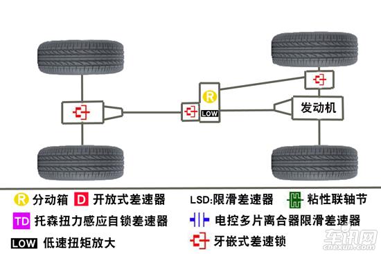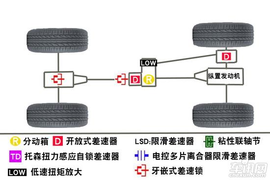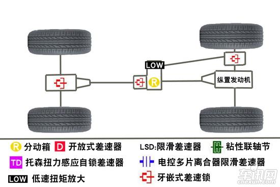 優點:在越野路況可以使車輛所有車輪得到有效動力,在惡劣情況下擺脫困境;