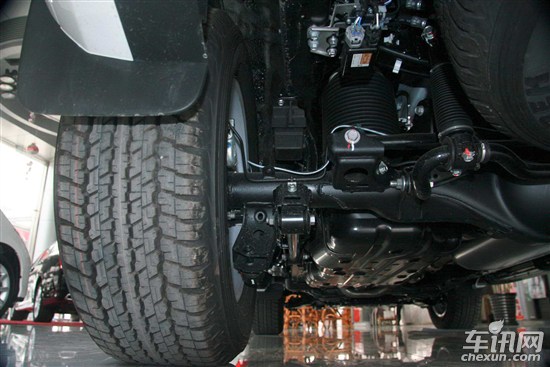 國產普拉多頂配車型采用了一套更適合越野的非承載式車身,這種結構擁有更好的車身剛性,為其翻山越嶺提供了一個良好的基礎。該車采用全時四驅系統,前軸配有一個開放式差速器,分動箱為托森差速器形式,同時在中橋以及后橋分別配有差速鎖。
