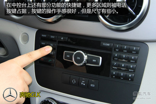 分析:奧迪Q5的MMI系統集成在中央控制面板區域,并非與傳統式被設計在擋把后方,不過操控按鍵較大且分布合理,比較容易上手。而奔馳GLK的中控區域按鍵設計較小,雖然手感不錯但容易誤操作,COMMAND操控旋鈕設計在中央扶手前方,占用空間較小,但操作效率仍需提高。