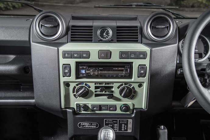 跟所有Heritage車型一樣,我們選擇的短軸距90 Heritage也帶有格拉斯米爾綠色的車身涂裝,阿拉斯加白色車頂,16寸輪圈與高側(cè)壁的米其林Latitude Cross輪胎。