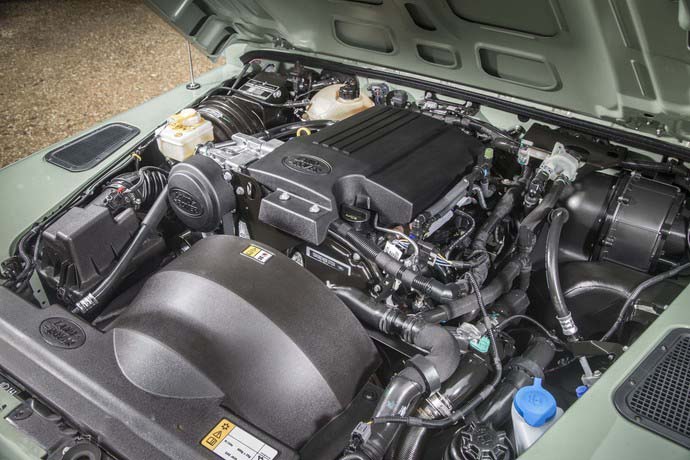 路虎衛(wèi)士曾經(jīng)搭載過五、六甚至八缸發(fā)動機,但是90 Heritage打破了這一傳統(tǒng),其選擇了一款最原始的四缸機。雖然其在3500轉(zhuǎn)時只能輸出較低的120馬力功率,但是這臺2.2升16氣門渦輪增壓柴油機與1948年的F型1.6升發(fā)動機相比,已經(jīng)是相當(dāng)優(yōu)秀了。它僅僅在2000轉(zhuǎn)就可達到265磅英尺(360牛米)的扭矩,而且盡管車身重量為4200磅(約合1.9噸),外形幾乎沒考慮空氣動力學(xué),但在六速手動變速箱的配合下,它仍擁有相對不俗的燃油經(jīng)濟性。