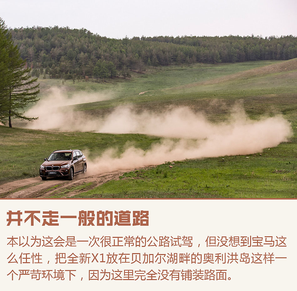 在貝加爾湖波光粼粼的水面旁,我們完成了全新X1的短暫試駕,與慣常的試駕不盡相同,這次寶馬勇敢的將國產車拉到海外,還在這樣一個極限的路況下穿山越嶺,除了為這美麗的意境,更多的像是在挑戰和證明。挑戰世俗的眼光,挑戰人們對SAV車型的觀念,同時也為證明X1的能力遠不止緊湊級城市SUV那么簡單。