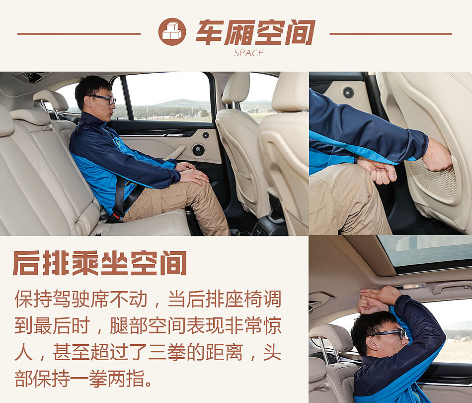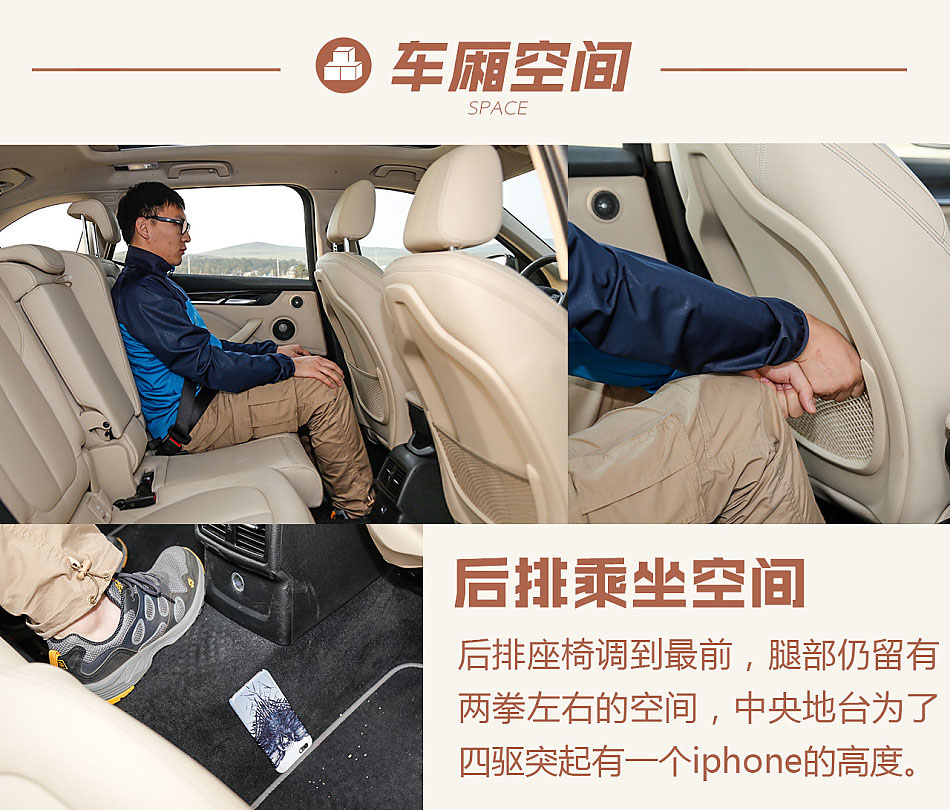 以前那個后排怎么坐都頂腿的X1早已是過去,全新X1的的空間可不像外觀看上去那樣只是大一些,而是大了一個級別,還巧妙的把利用率放到最大化,寬敞規整超乎了我們的預期。