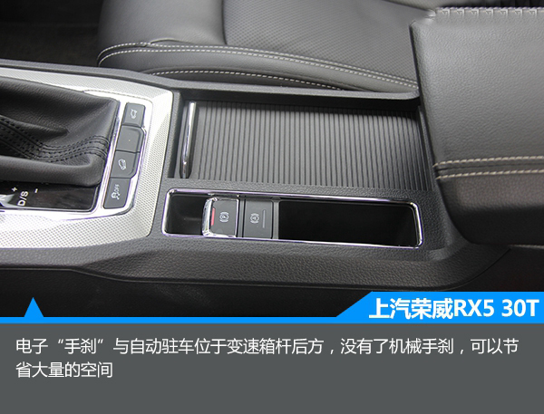 打開車門,編輯立刻被中控臺上10.4英寸的顯示屏所吸引,寬大的顯示屏不僅科技感十足,并且還是榮威互聯網汽車的真諦,屏幕分辨率相當高,顯示清晰并且信息量巨大,中控臺僅僅保留幾個物理按鍵。與此同時,這塊“ipad”還略微向駕駛員一側傾斜,確保駕駛員的行車安全。此外,中控臺以及門邊可以觸的地方,幾乎都采用軟性材料包裹,不僅豪華感十足,同時對于車內乘客的舒適度也有不小地提升。此外,包括全景天窗、電動尾門等在RX5上也都有配備,極大地提升了舒適性。