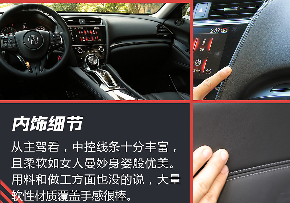 CDX采用環(huán)抱式內飾設計,視覺效果不錯,尤其是中控部分的設計,很有美感。在用料和做工方面處理也很妥當,大量軟性材質覆蓋并采用了縫線處理,挺有豪華感同時不會顯得浮夸。