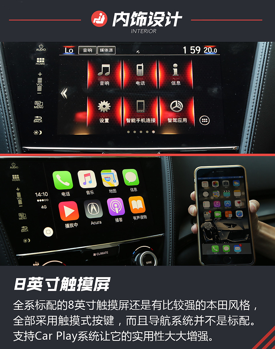 8英寸觸摸屏、藍牙系統(tǒng)和Car Play互聯(lián)系統(tǒng)都是全系標配,實用性很強。除了入門版,其余車型均配備有三種視角的倒車影像功能,個人認為比360°影像還順手。至于導航,雖然只有頂配和次頂配兩款車型配備,但是有了Car Play功能倒是顯得原廠導航并不是必需品,更何況還專門設計了手機槽,日常使用非常便利。