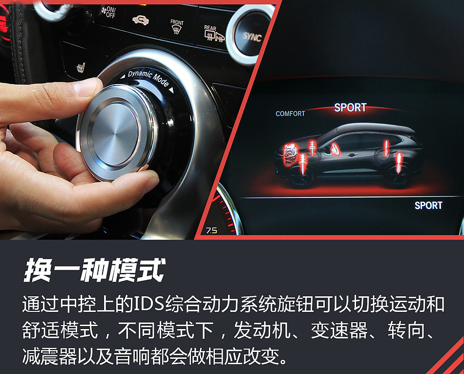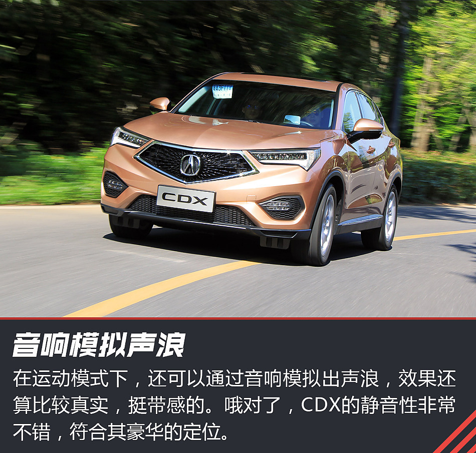 CDX的可以切換舒適和運動兩種模式,在這兩種模式下,變速箱變化最為明顯,降擋更積極,發(fā)動機會保持在更高的轉速下行駛。順便說一句,如果不太習慣變速箱的邏輯,倒是可以通過撥片切換為手動模式,反應非常快,用著很順手。但是要注意它并不會自動切換回自動模式,而是需要按住撥片3秒左右才會換回自動模式,或許這是為了給駕駛者更多的權限吧,總之如果切換到手動模式千萬不要忘了及時換擋。