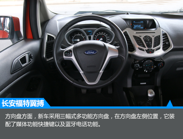 內飾方面,福特翼搏的設計感極強,尤其是中控出風口以及多媒體控制區(qū),該區(qū)域設計的非常科幻并帶有些力量感。方向盤方面,新車采用三幅式多功能方向盤,在方向盤左側位置,它裝配了媒體功能快捷鍵以及藍牙電話功能。儀表盤方面,新車采用雙炮筒的設計,藍色的指針頗為動感。而最上方的行車電腦可現(xiàn)實豐富的信息。中控臺方面,新車在頂部鑲嵌了一塊尺寸較小的顯示屏,它可現(xiàn)實藍牙、菜單選項、收音機等功能。中控臺下發(fā)為車輛空調控制區(qū),該區(qū)域布局合理,上手難度極低。