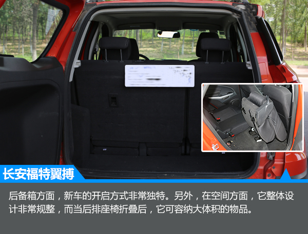 座椅空間方面,福特翼搏采用真皮座椅,從座椅縫線來看,它的做工還是非常精細的。另外,在座椅調節(jié)方面,新車并沒有安裝電動座椅,這也算是一個遺憾。在空間方面,新車雖然定位于小型SUV車型,但實際的表現(xiàn)來看,它還是極富誠意的,雖談不上越級的能力,但整體水平在同級別屬于中上等水平。最后,是要表揚它的后備箱空間,它的整體設計非常規(guī)整,而它拉門式的開啟方式也是一大亮點。