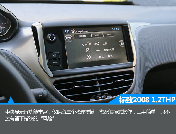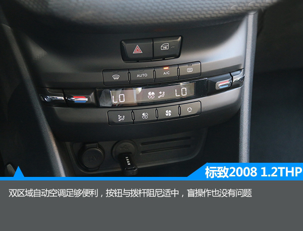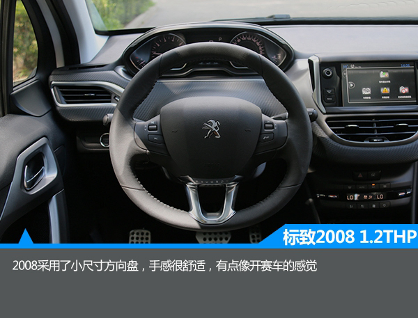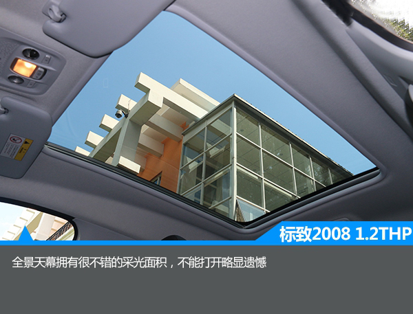 1.2T版本同樣與之前的版本基本保持一致,中控臺被大面積軟性材料覆蓋,顯得誠意十足。此外,中控臺采用了對稱式的設計,由上至下分別為集成大部分功能的液晶屏,僅保留三個物理按鍵的設計也簡潔明了,而雙區(qū)域自動空調的配備顯得誠意十足。此外,與一般車型相比,2008的方向盤尺寸很小,握感很舒服,有一種開賽車的感覺。與此同時,該車還配備了全景天窗,有很大的采光面積,不過不能開啟略顯遺憾。