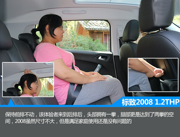 盡管定位于小型城市SUV,但是2008還是可以滿足大多數(shù)家庭使用的。身高165cm的女性體驗者調整好坐姿后,頭部依然有一拳多的空間,保持前排不動,該體驗者來到后排之后,頭部同樣可以保證一拳的空間,腿部則達到了兩拳的空間,盡管是小型SUV,但是2008的空間表現(xiàn)值得肯定。此外,該車的儲物空間也比較豐富,大多數(shù)的物品都能找到收納之所。