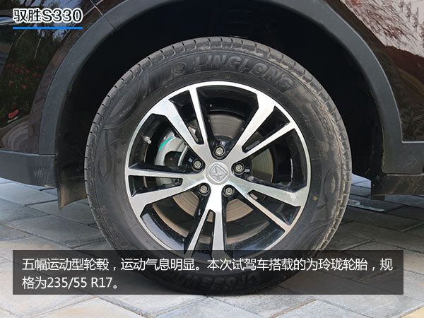 五幅運動型輪轂,運動氣息明顯。本次試駕車搭載的為玲瓏輪胎,規格為235/55 R17。
