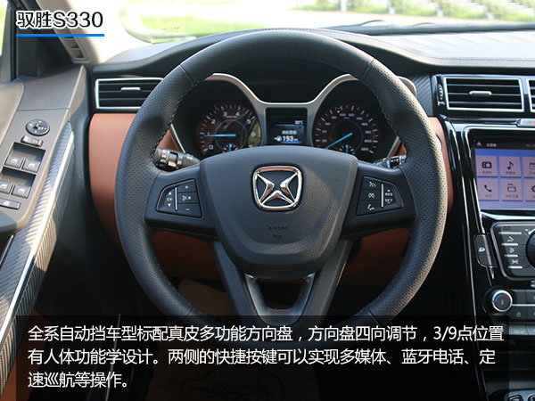 全系自動擋車型標配真皮多功能方向盤,方向盤四向調節,3/9點位置有人體功能學設計。兩側的快捷按鍵可以實現多媒體、藍牙電話、定速巡航等操作。
