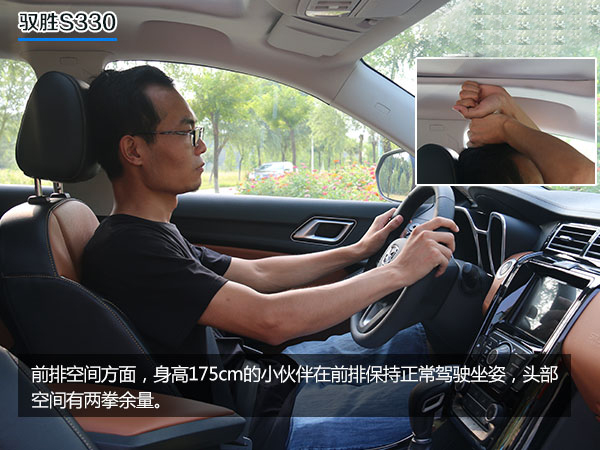前排空間方面,身高175cm的小伙伴在前排保持正常駕駛坐姿,頭部空間有兩拳余量。