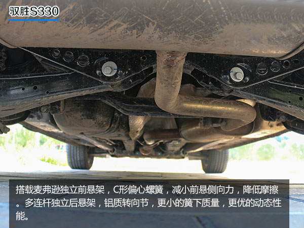 搭載麥弗遜獨立前懸架,C形偏心螺簧,減小前懸側向力,降低摩擦。多連桿獨立后懸架,鋁質轉向節,更小的簧下質量,更優的動態性能。