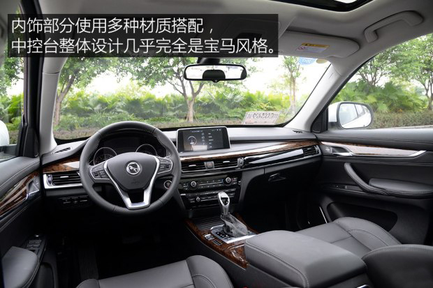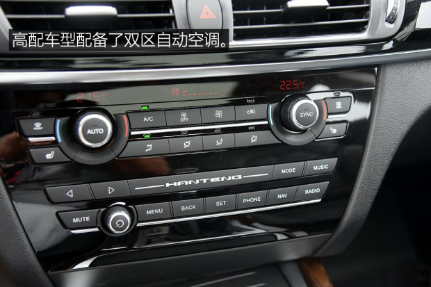 內飾部分,漢騰X7使用多種材質搭配,整體布局借鑒了寶馬的設計。配置方面,漢騰X7搭載9寸多點觸控電容屏,配合漢騰云智聯網服務系統,可實現遠程診斷、資訊推送、增值服務、安防保護、遠程控制、一鍵導航等服務。此外該車還配備了電動尾門、220V電源及USB插口、無鑰匙進入及一鍵啟動系統。值得一提的是,漢騰X7還配備有全彩多信息顯示HUD抬頭顯示系統。