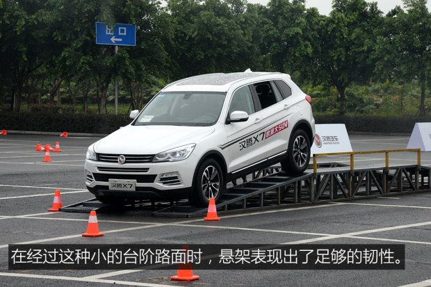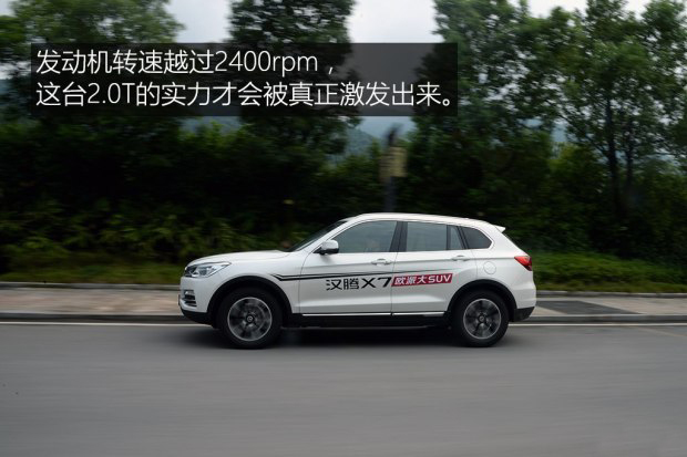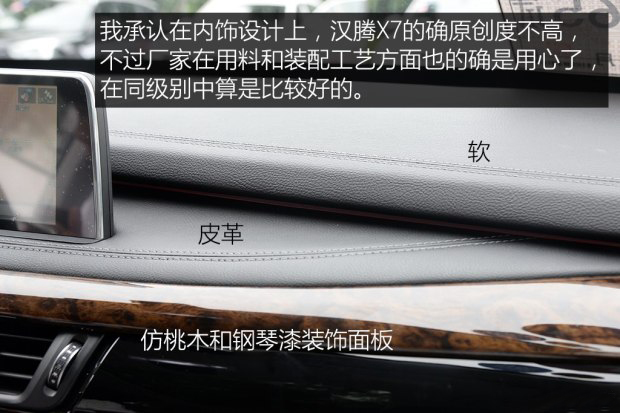 電動助力轉向以及懸架都是偏沉穩、硬朗的風格,喜歡開歐系車的朋友應該不會對漢騰X7的底盤感到反感,例如我就比較喜歡這樣的設定。不過我有兩點建議還是要提一下,第一點就是這款車的轉向和底盤感覺還不夠細膩,不能營造出高級感,而同級有些對手在這方面就做的比較好。第二點就是前排座椅稍硬,再配合上略顯硬朗的懸架,使得舒適性有所降低,建議日后廠家能夠采用柔軟一些的填充物。