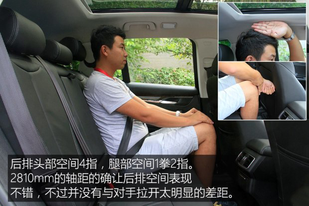 漢騰X7的乘坐空間表現還不錯,畢竟它的軸距已經達到了2810mm,明顯超越同級對手。而通過實際體驗,我們發現它的后排空間的確比較寬敞,只不過還沒有與對手拉開明顯差距。