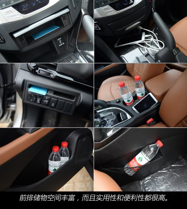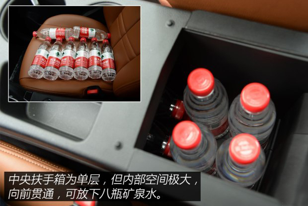 儲物空間之豐富讓人滿意,所有隨身物品都能在車內找到合適的安放位置。中控臺底部儲物槽尤為實用,可以將正在充電的手機放在這里,一點也不礙事。杯架旁的儲物槽同樣能容下手機,而且開車當中拿取非常方便,不需要任何的視線轉移。最給力的是中央扶手箱,采用電子手剎的頂配車型比傳統拉線手剎的機械結構少一些,扶手箱底部為前后貫通,可以放下八瓶礦泉水,真是非常實用。