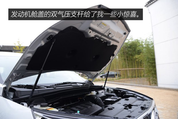 另外,雙氣壓支桿在這個級別和價位的車型當中能配備也是厚道了,雖然發動機艙蓋并不會經常打開,但當我打開的那一刻確實有個小驚喜,同樣配備氣壓支桿的競品還有博越和長安CS75。