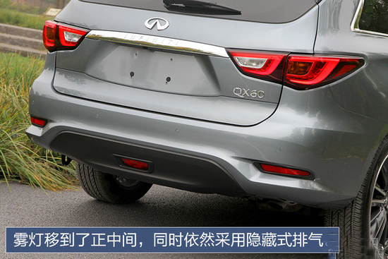 車尾最大的變化同樣來自于燈組部分,在調整之后樣式與Q50L有些相似,點亮之后很漂亮。此外,霧燈被挪到了正中間,同時排氣依然采用隱藏式設計。
