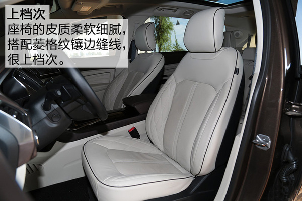 除此之外,座椅也采用了更柔軟更有質(zhì)感的高級真皮,同時(shí)采用豪華車上常見的菱格紋鑲邊縫線,檔次感明顯提升。