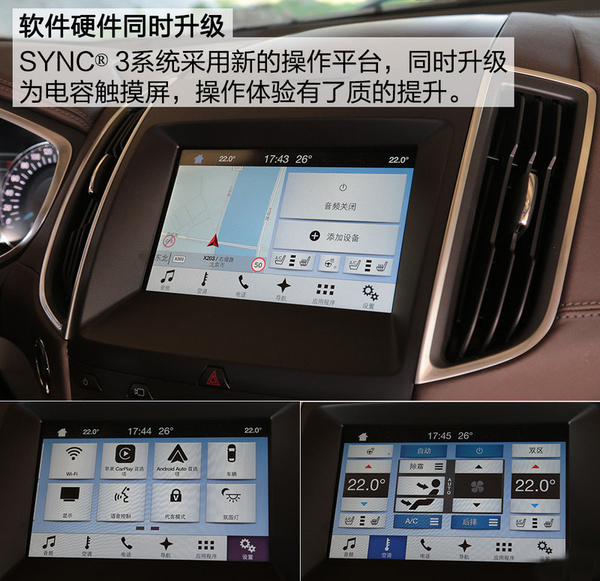 這套新系統(tǒng)相比之前有了質(zhì)的提升,無論是軟件還是硬件都進(jìn)行了升級,比如采用更主流的電容屏取代了之前的電阻屏,操作更便利;操作系統(tǒng)改用了黑莓QNX的操作平臺(tái),系統(tǒng)反應(yīng)快,操作相當(dāng)流暢。另外,SYNC? 3系統(tǒng)也加入了目前主流的蘋果CarPlay與手機(jī)映射功能,便利性大大提高。從實(shí)際體驗(yàn)來看,這套系統(tǒng)比上代好用太多了。