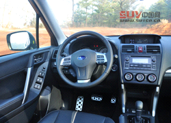 SI-DRIVE(斯巴魯智能駕駛提升系統)也首次配備于新一代Forester森林人上,這一駕駛輔助系統能使發動機具有“智能模式”、“運動模式”以及“超級運動模式(2.0XT車型專有)”三種截然不同的動力輸出模式,我們試駕的2.5i尊貴版車型只有前兩種模式。駕駛者可根據路況輕輕撥動方向盤上的控制按鍵來選用適合的模式,既能促進操控樂趣,又能保證駕駛燃油經濟性。